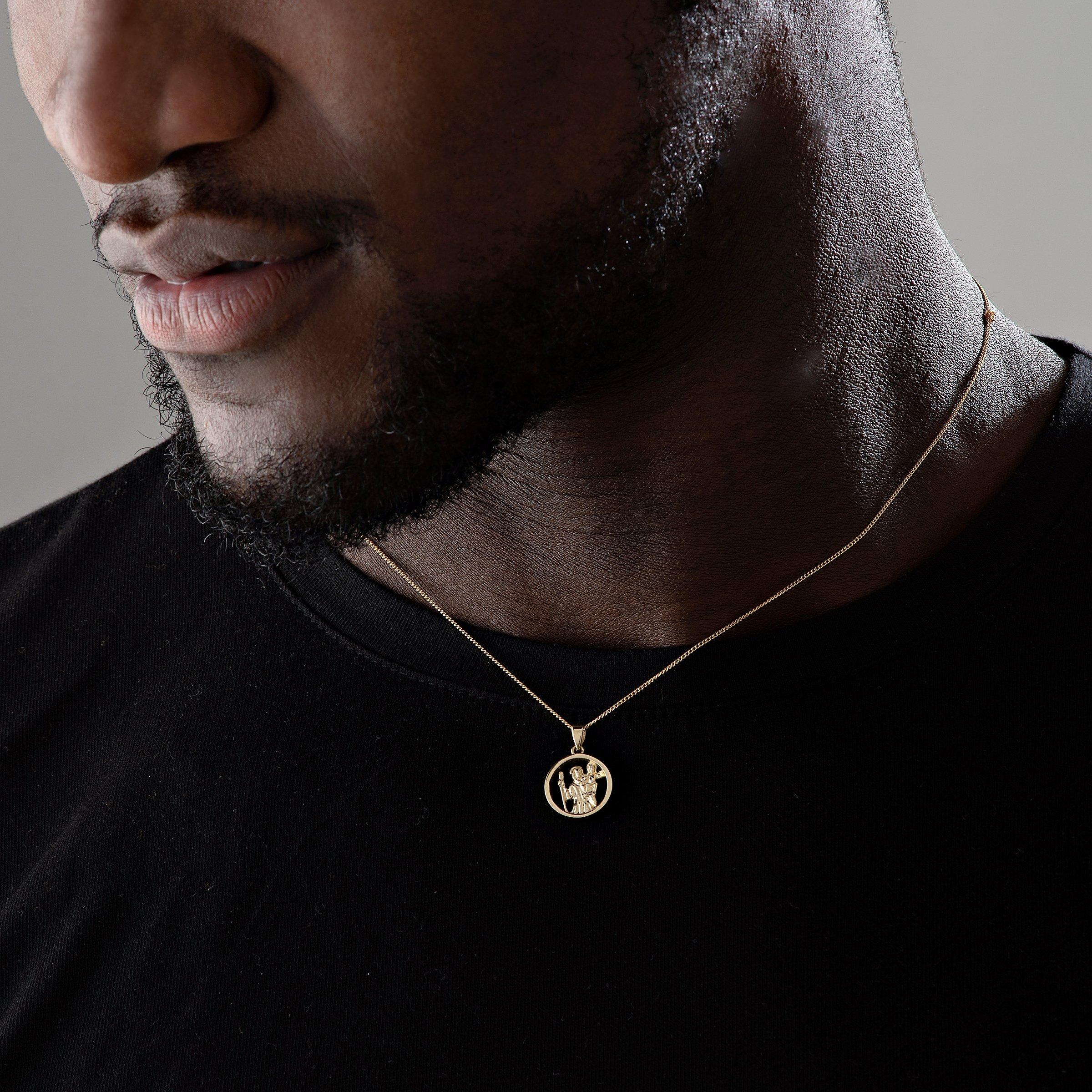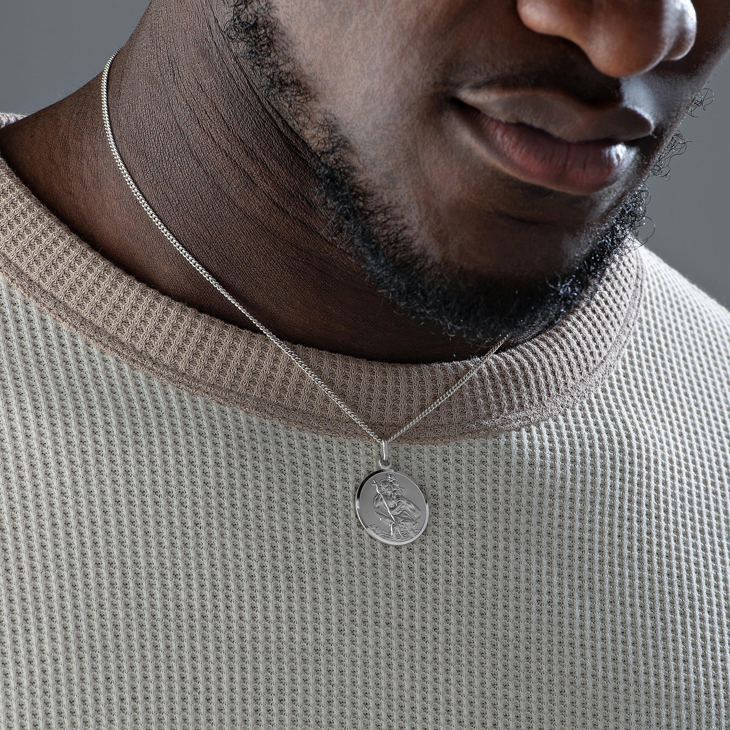 Mens Saint Christopher Medal necklace in sterling silver on an oxidized sterling silver box chain. 5 out of 5 stars. Top Selection Best Price Guarantee.